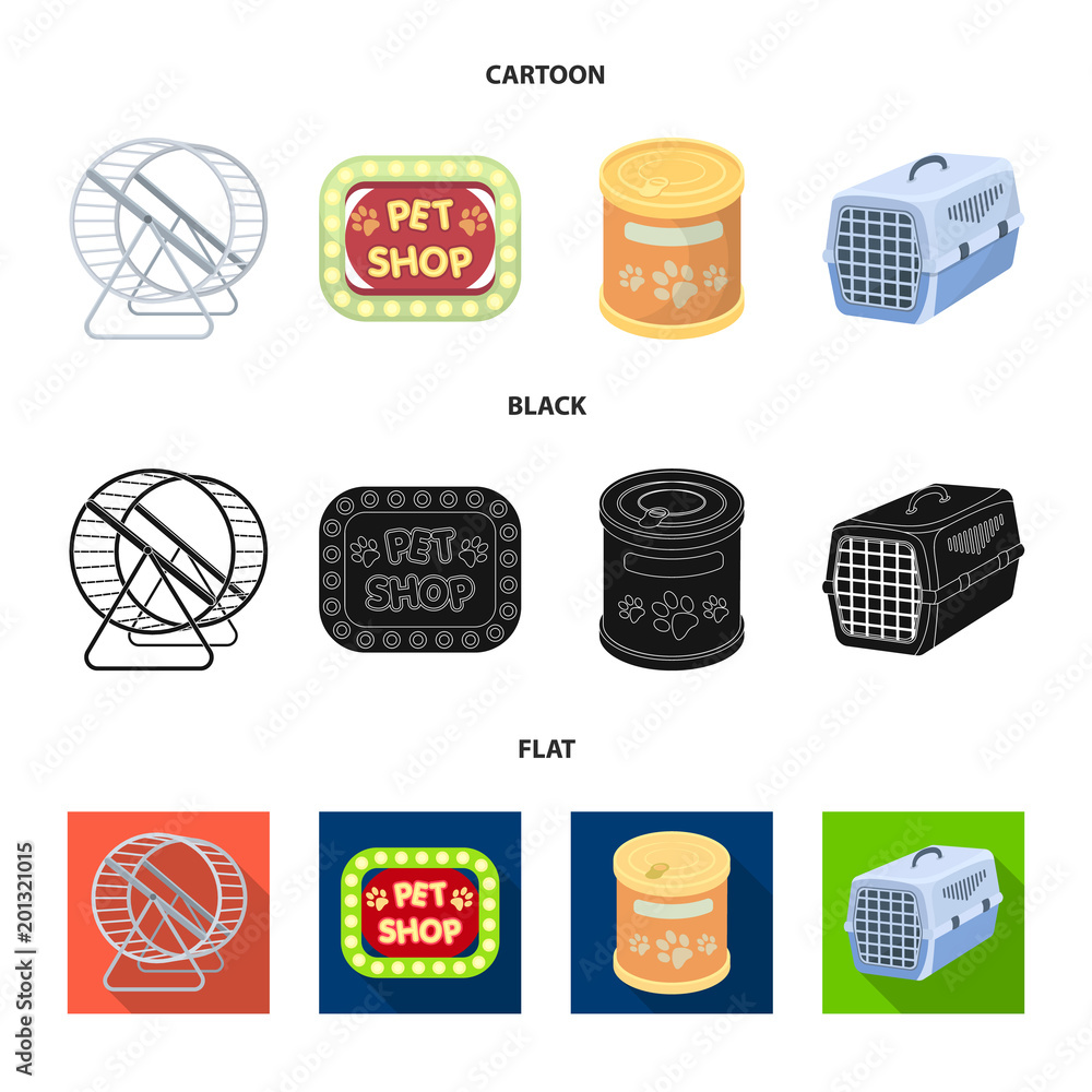 Container For Carrying Animals And Other Attributes Of The Zoo Store Pet Shop Set Collection Icons In Cartoon Black Flat Style Vector Symbol Stock Illustration Web Stock Vector Adobe Stock